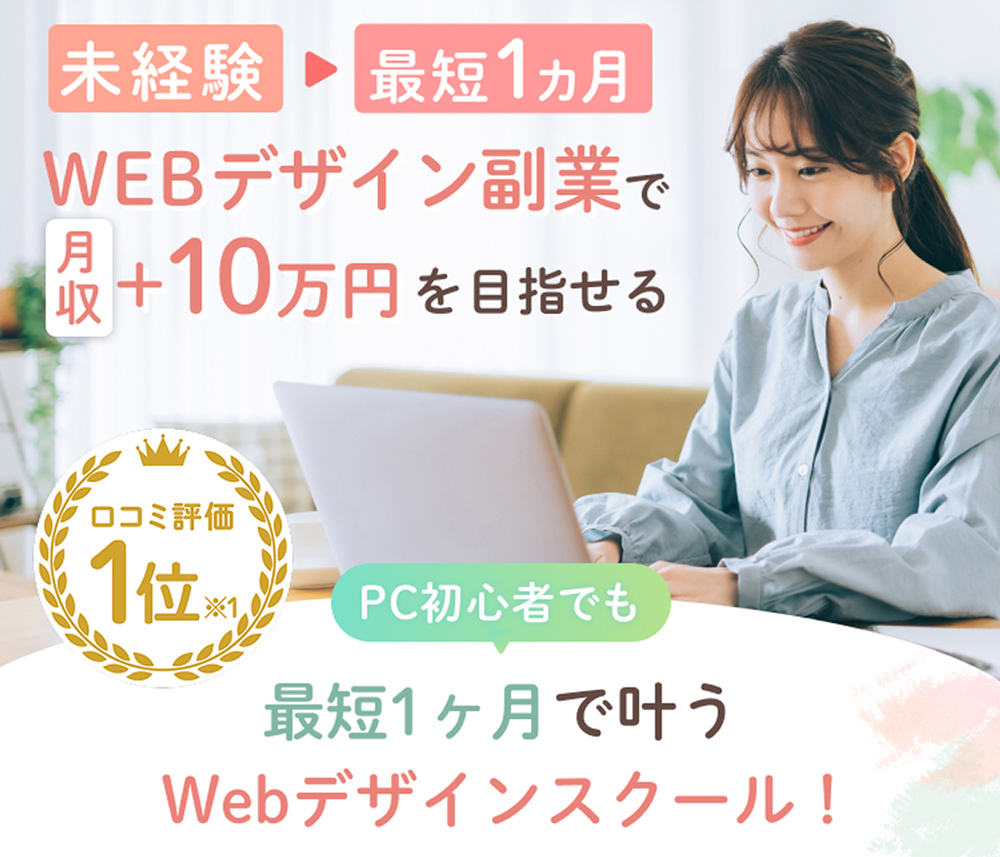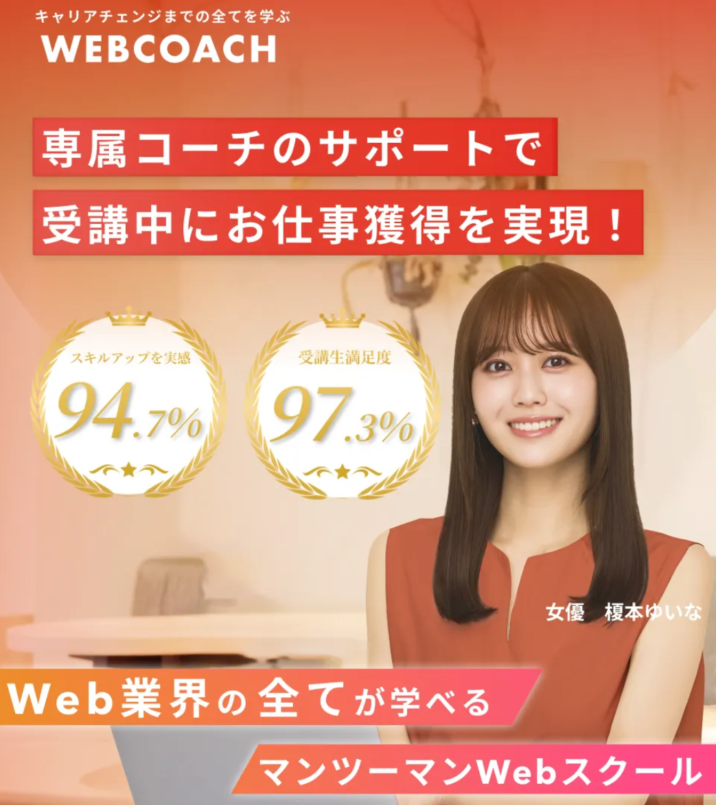 「WEBCOACH(ウェブコーチ)」は未経験からWebデザイナーをめざせるオンラインスクールで、あなたの好きな時間&ペースで学習できます。
